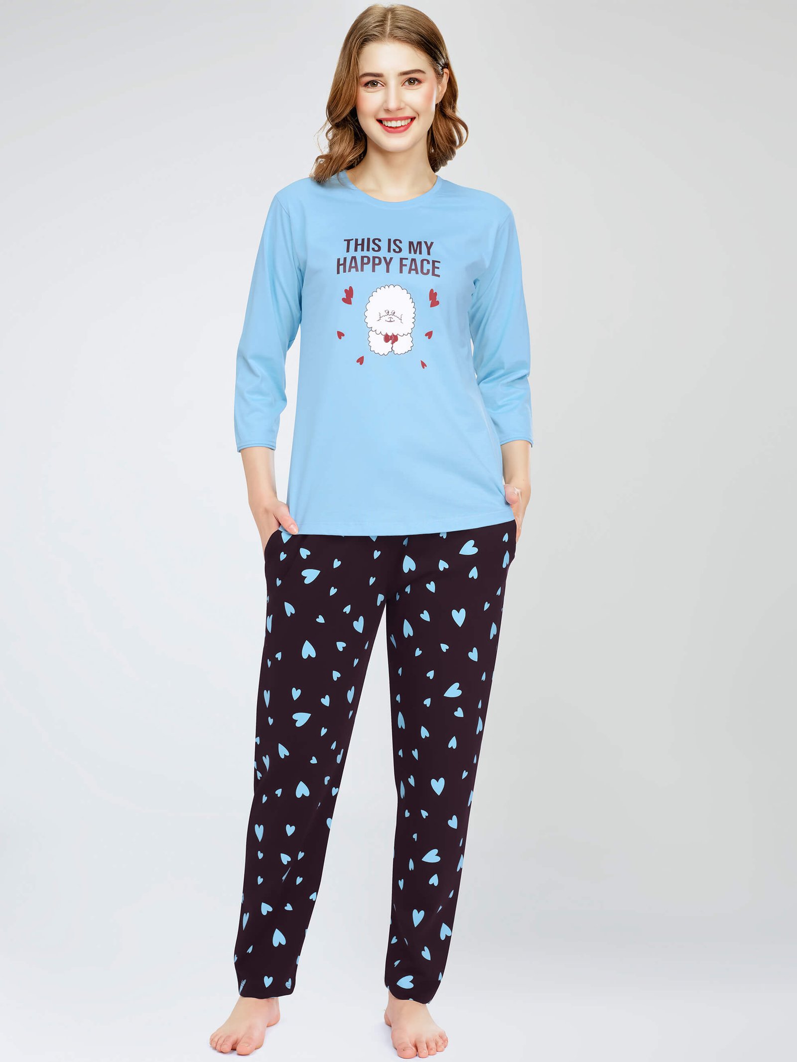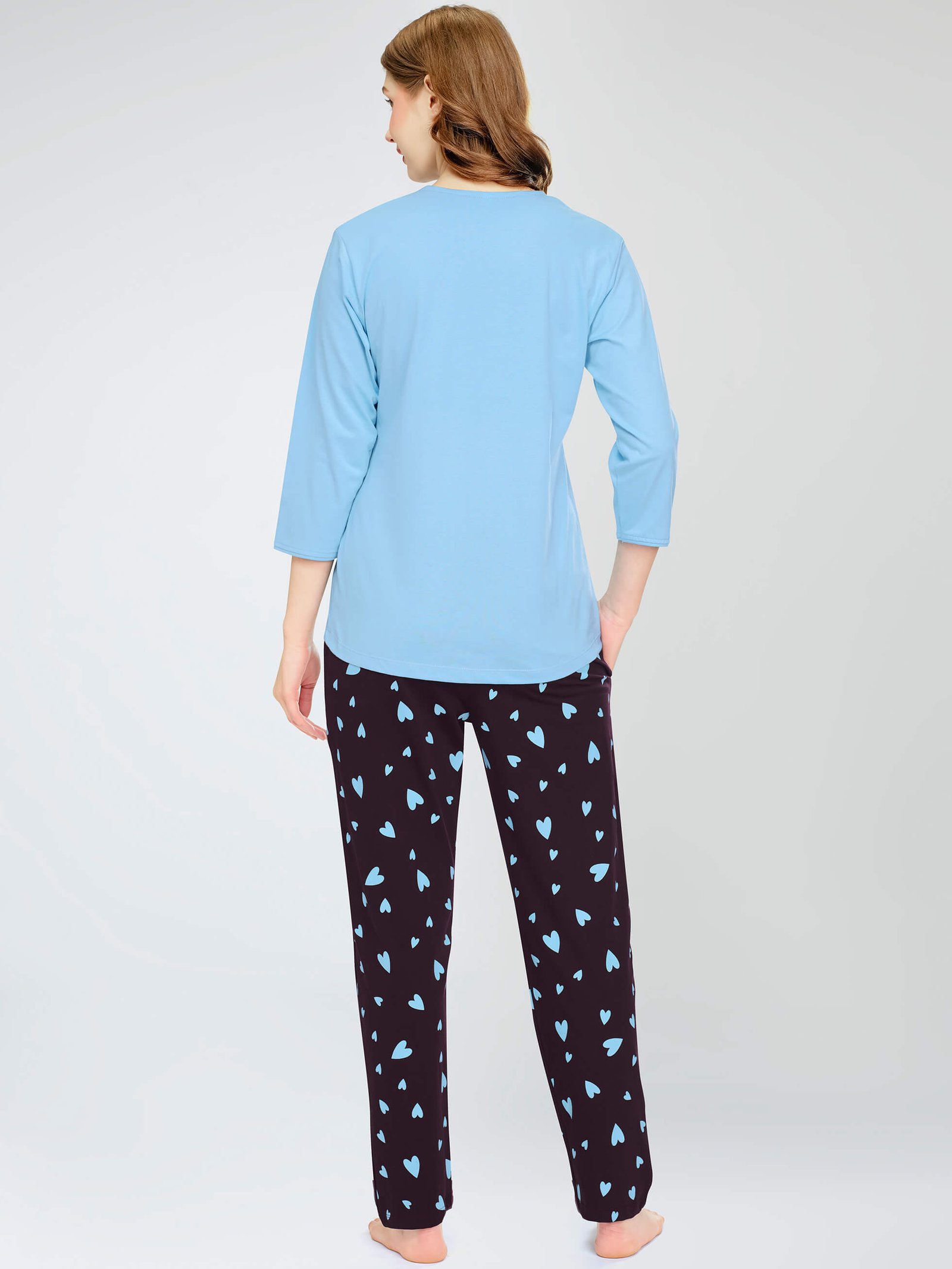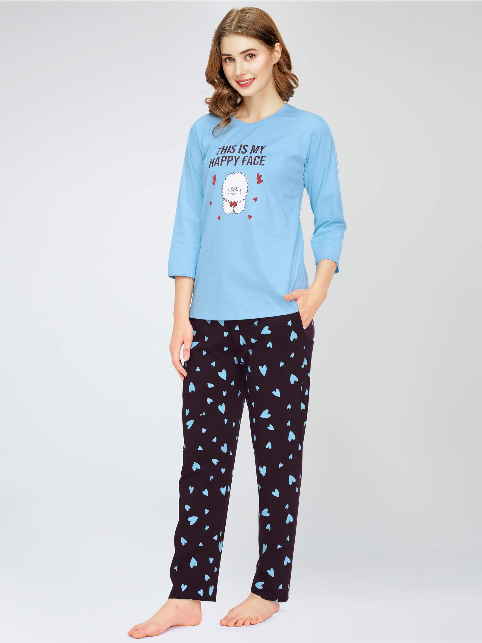 - Blue Heart Printed Cotton Night Dress of top and pyjamas