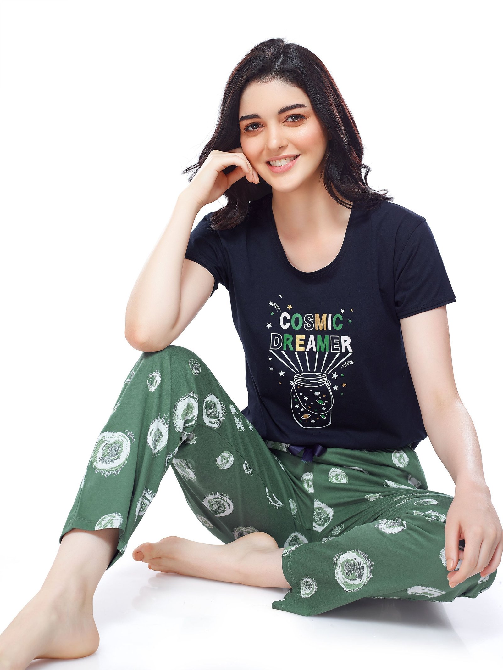 Women’s Cotton Black Bubble Printed Stylish Night Suit Set