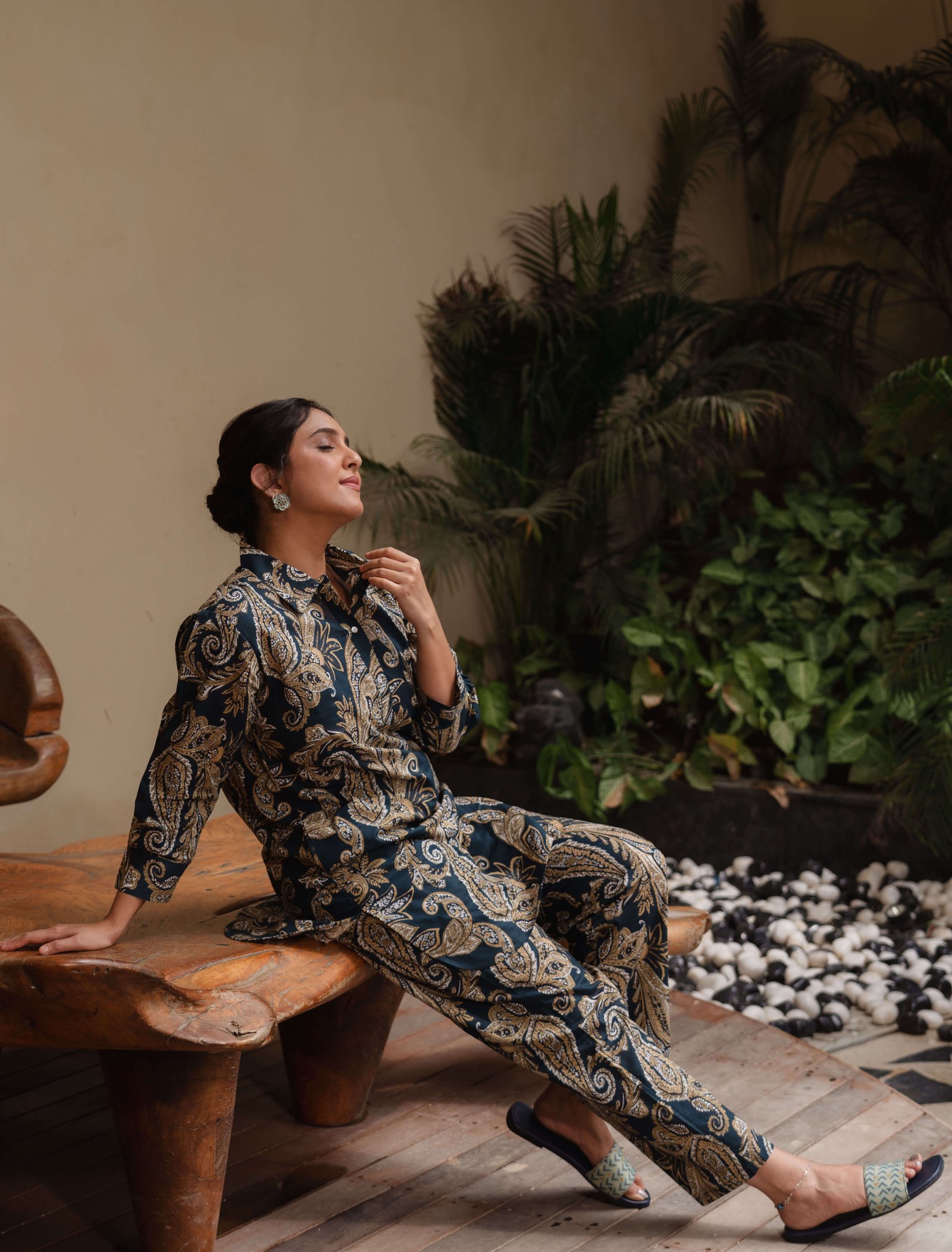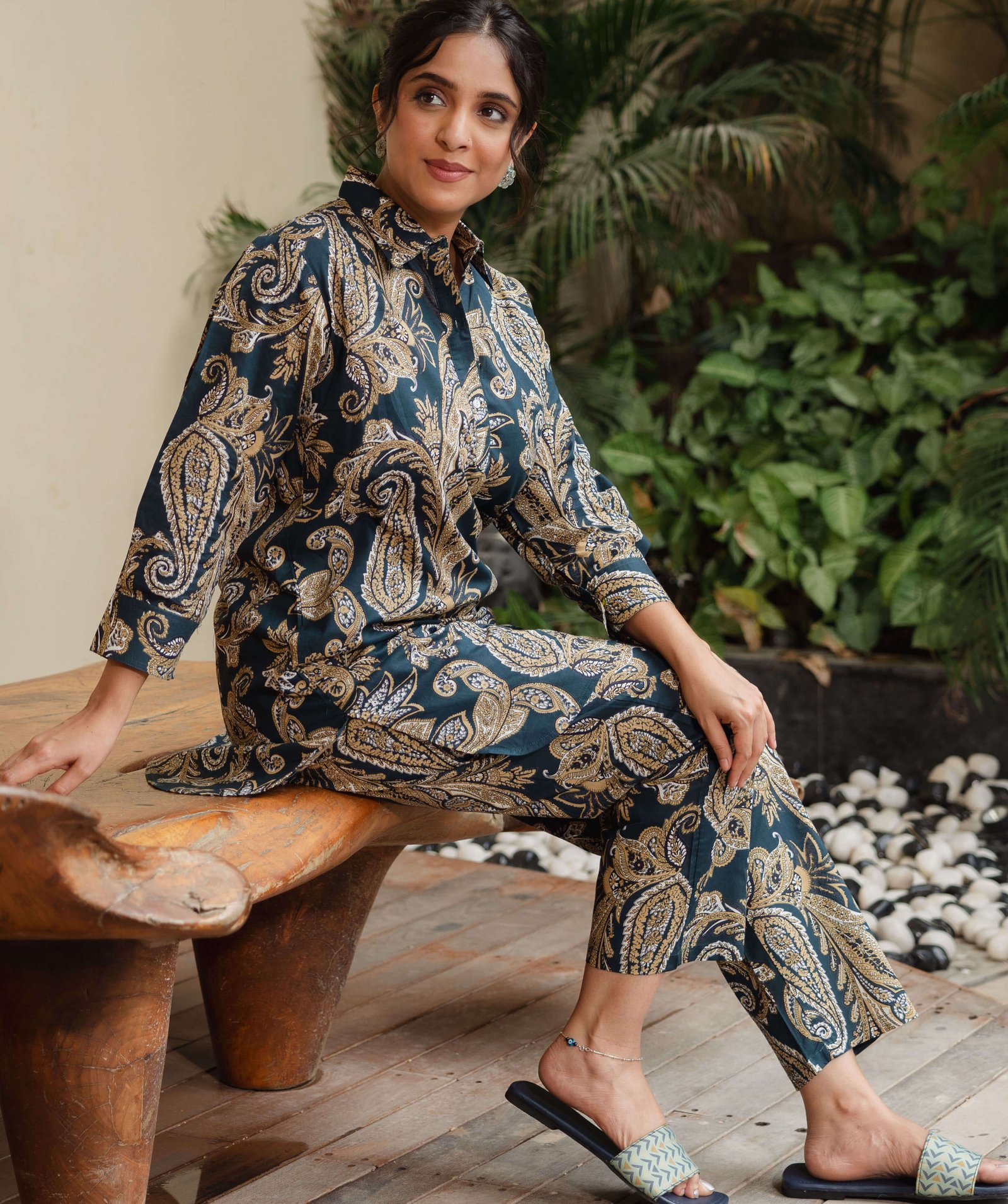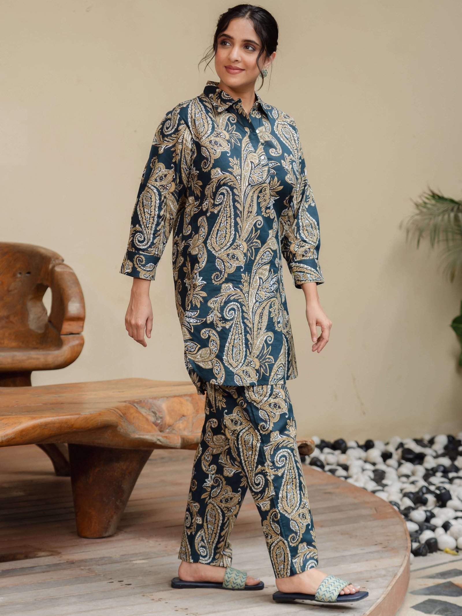 Make most of the comfort offered by range of night suit. The classic colour and fun pattern of this piece makes it a must have for your wardrobe. Wear it with contrast coloured flip flops for a complete relaxed day at home!