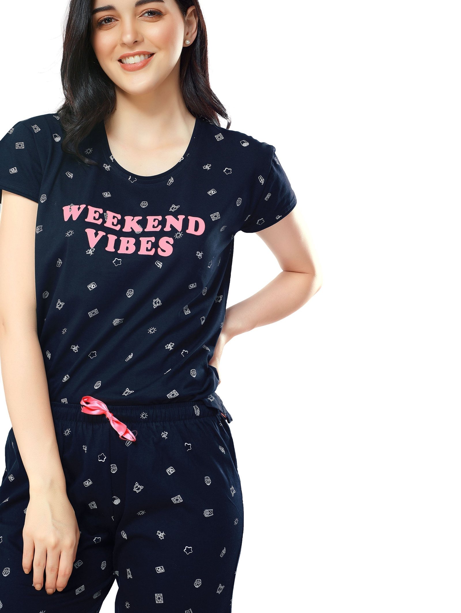 Introducing chic night suit from. A practical piece this particular piece is both comfortable as well as feminine making it a perfect choice for a relaxing evening at home to unwind after a hard day’s work. Wear it with flip flops for a lazy day at home.