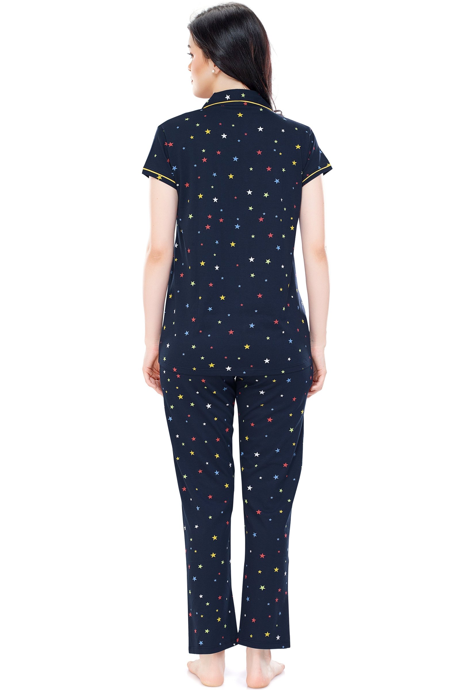 - Navy Blue stat printed night suit consists of shirt and pyjamas