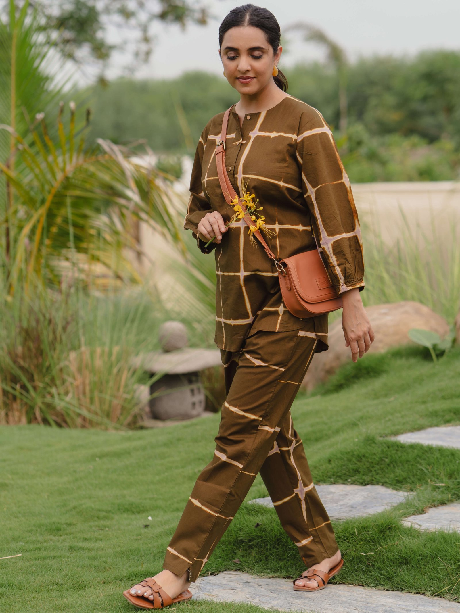 - Cotton Olive Green Checked Printed consists of Kurti and pyjamas