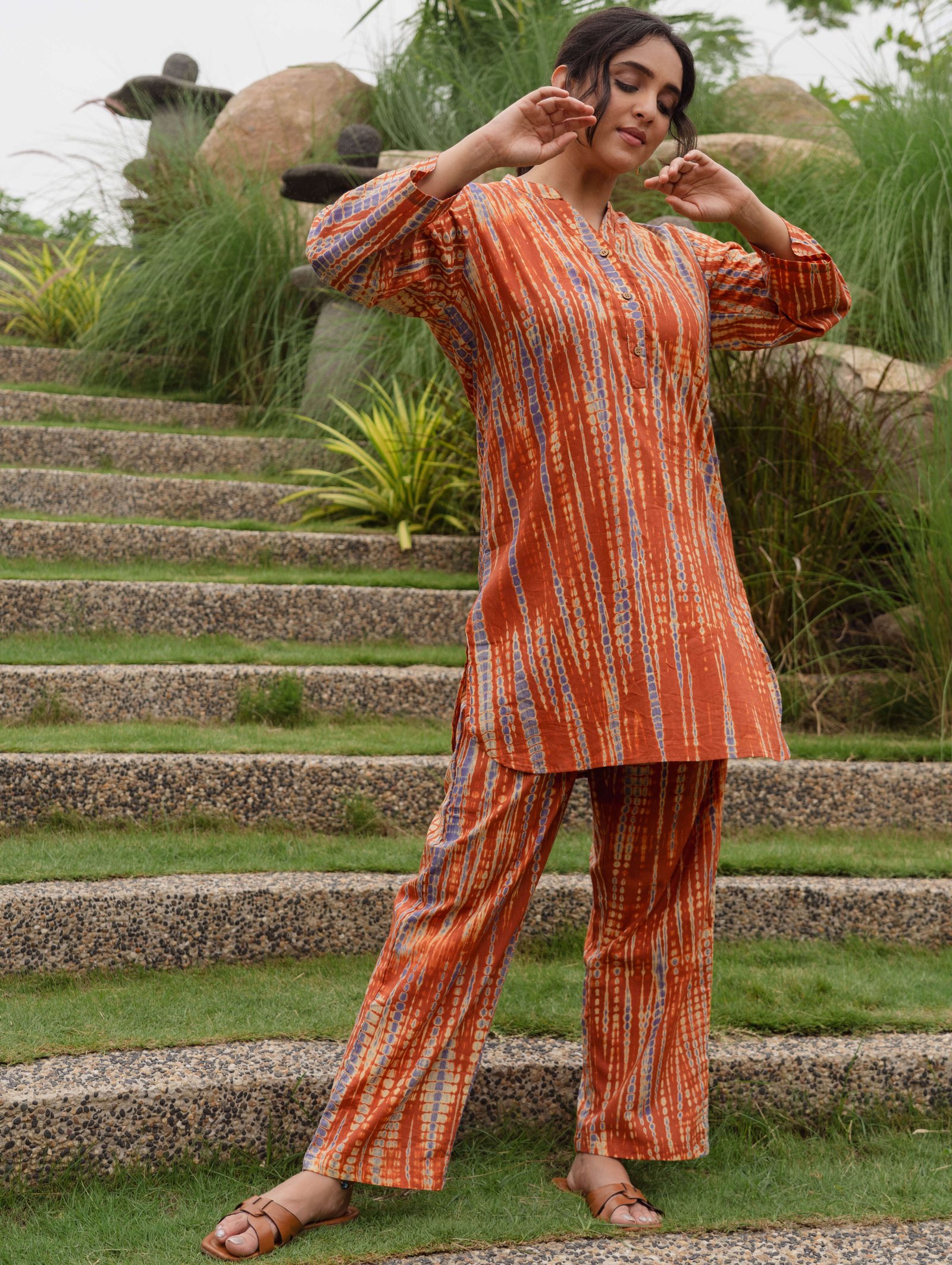 - Cotton Orange Tie-Dye Printed consists of Kurti and pyjamas