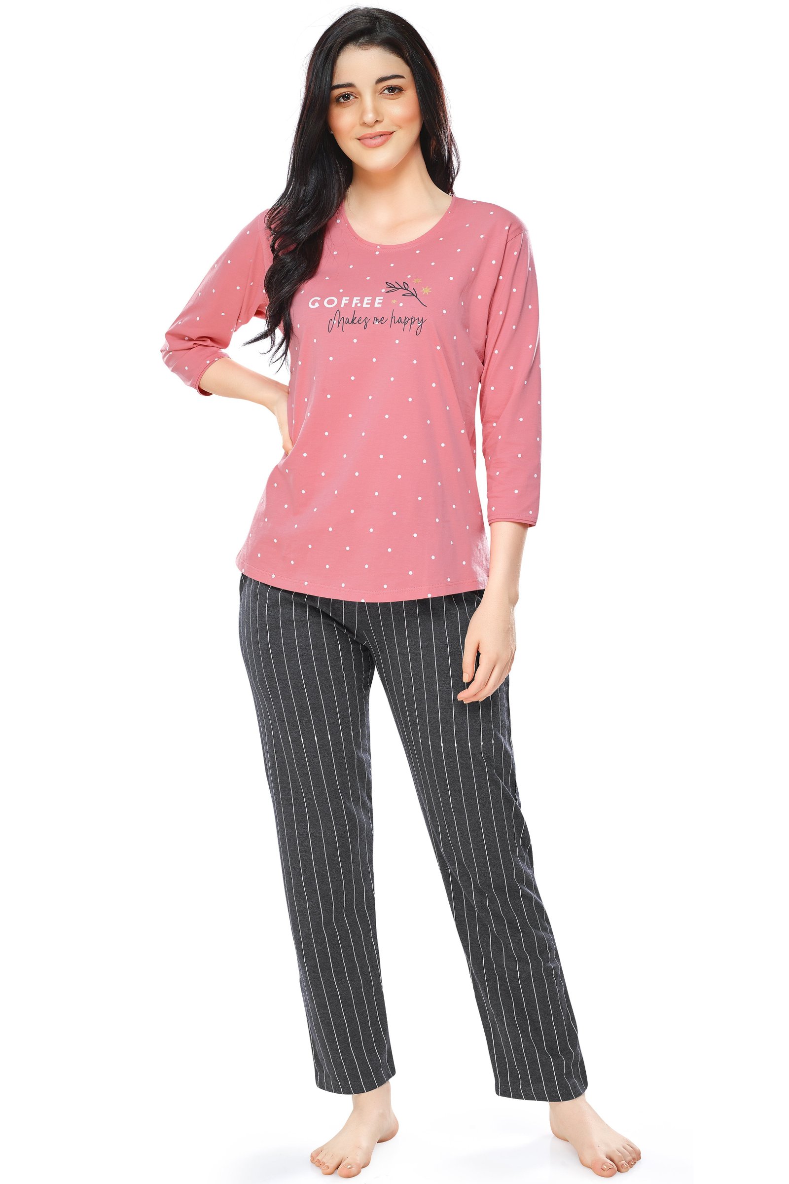 Women’s Cotton Pink Dot Printed Stylish Night Suit Set