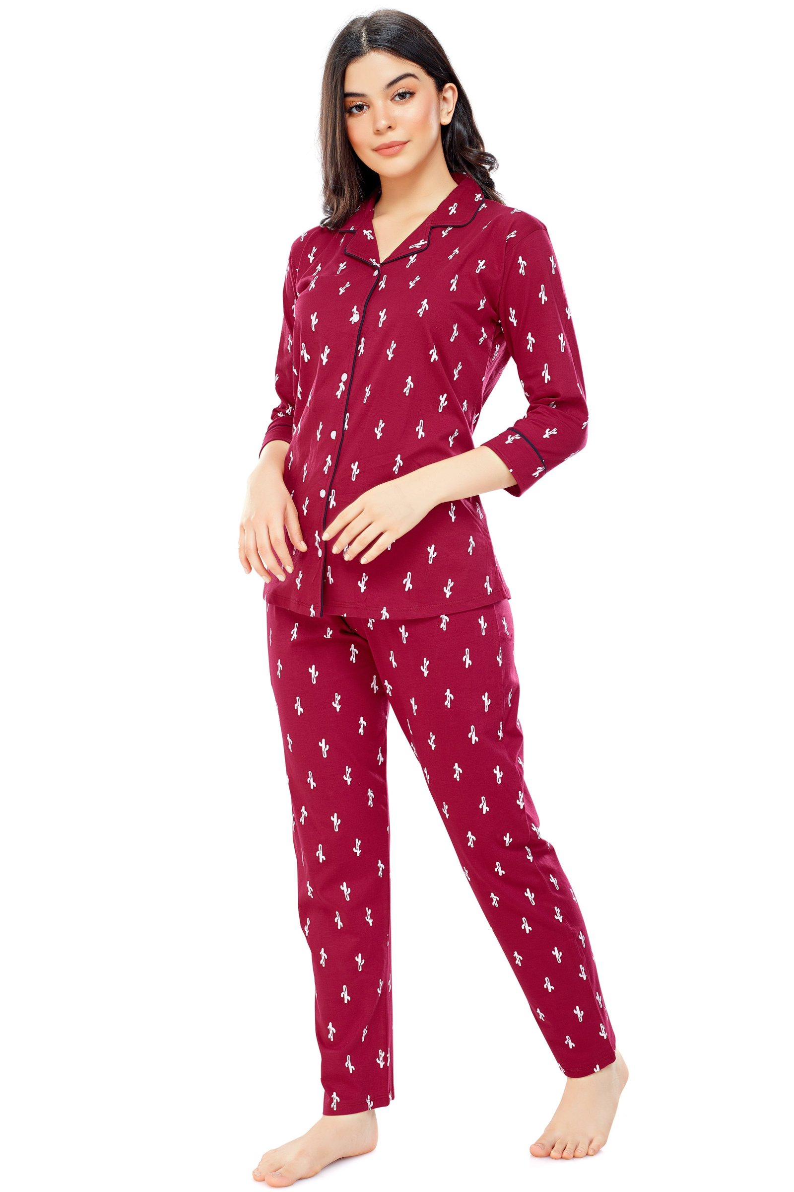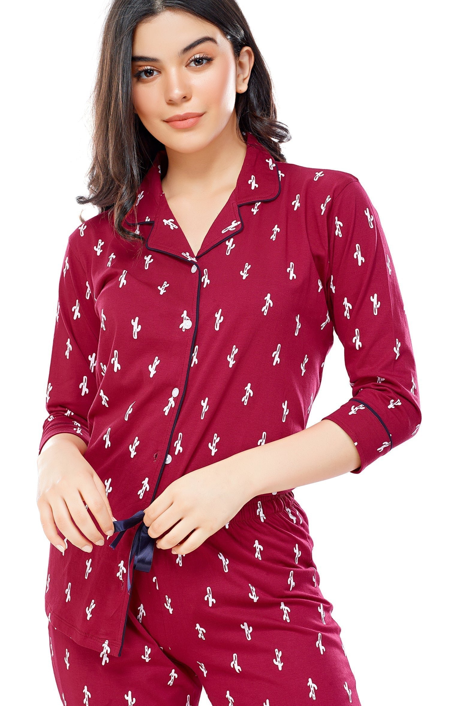 Women’s Cotton Red Cactus Printed Stylish Night Suit Set