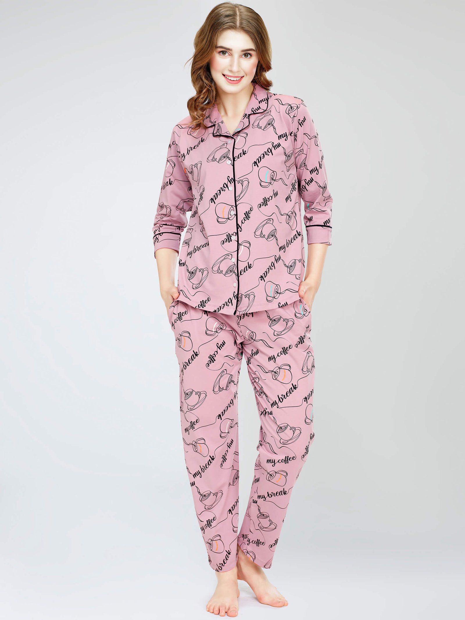• Mauve Cup & Saucer printed night suit consists of shirt and pyjamas
