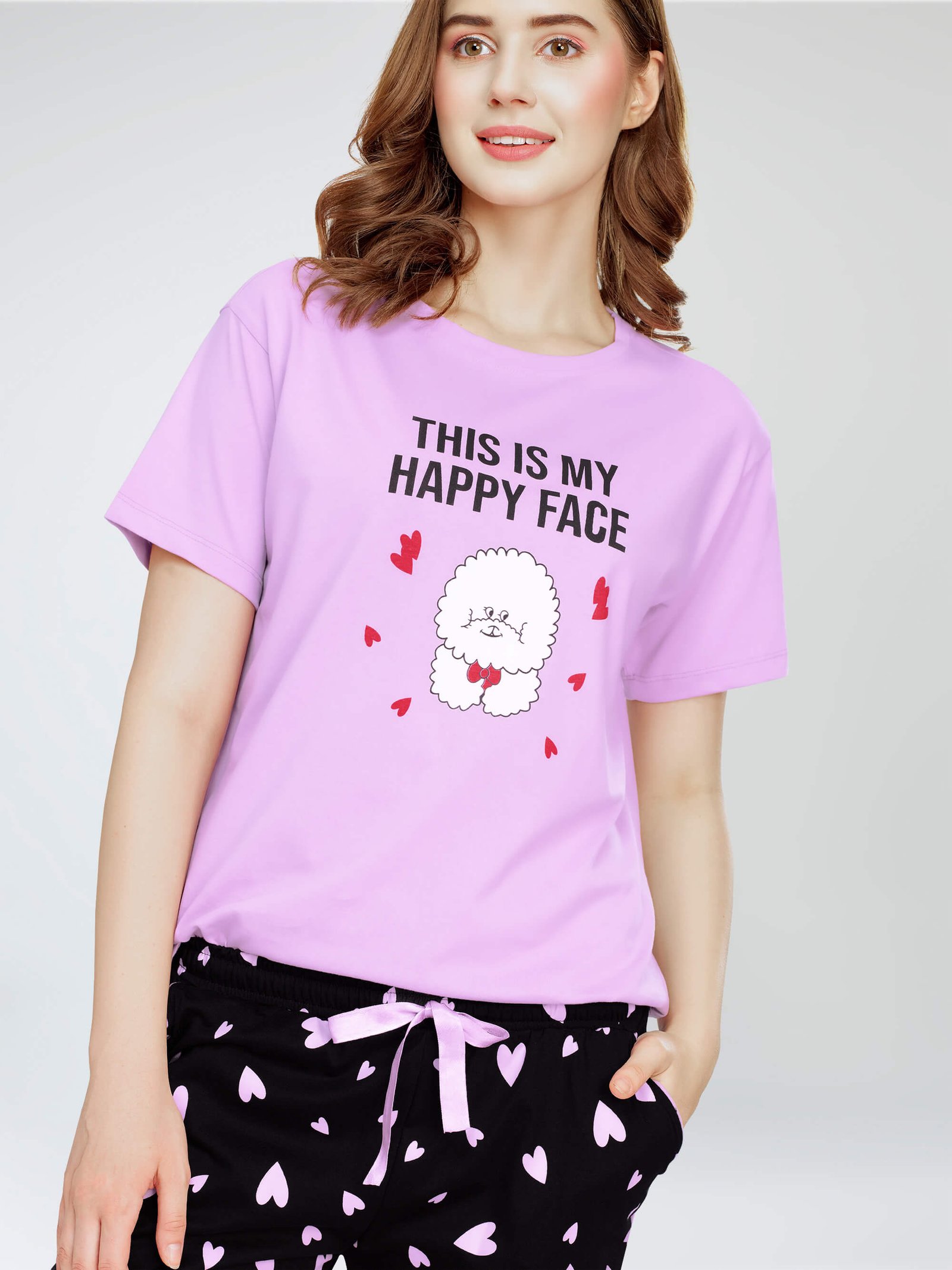 Women’s Pink Heart Printed Cotton Night Dress of Top and Short’s set