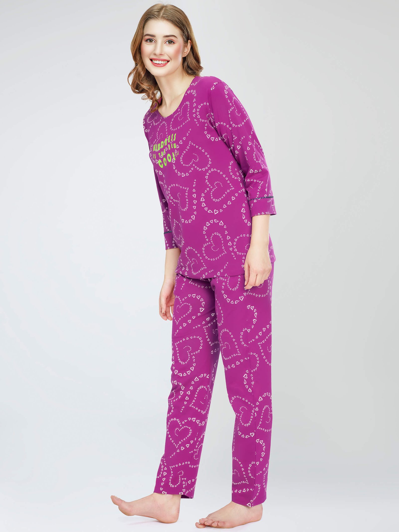 - Purple Heart Printed Cotton Night Dress of top and pyjamas