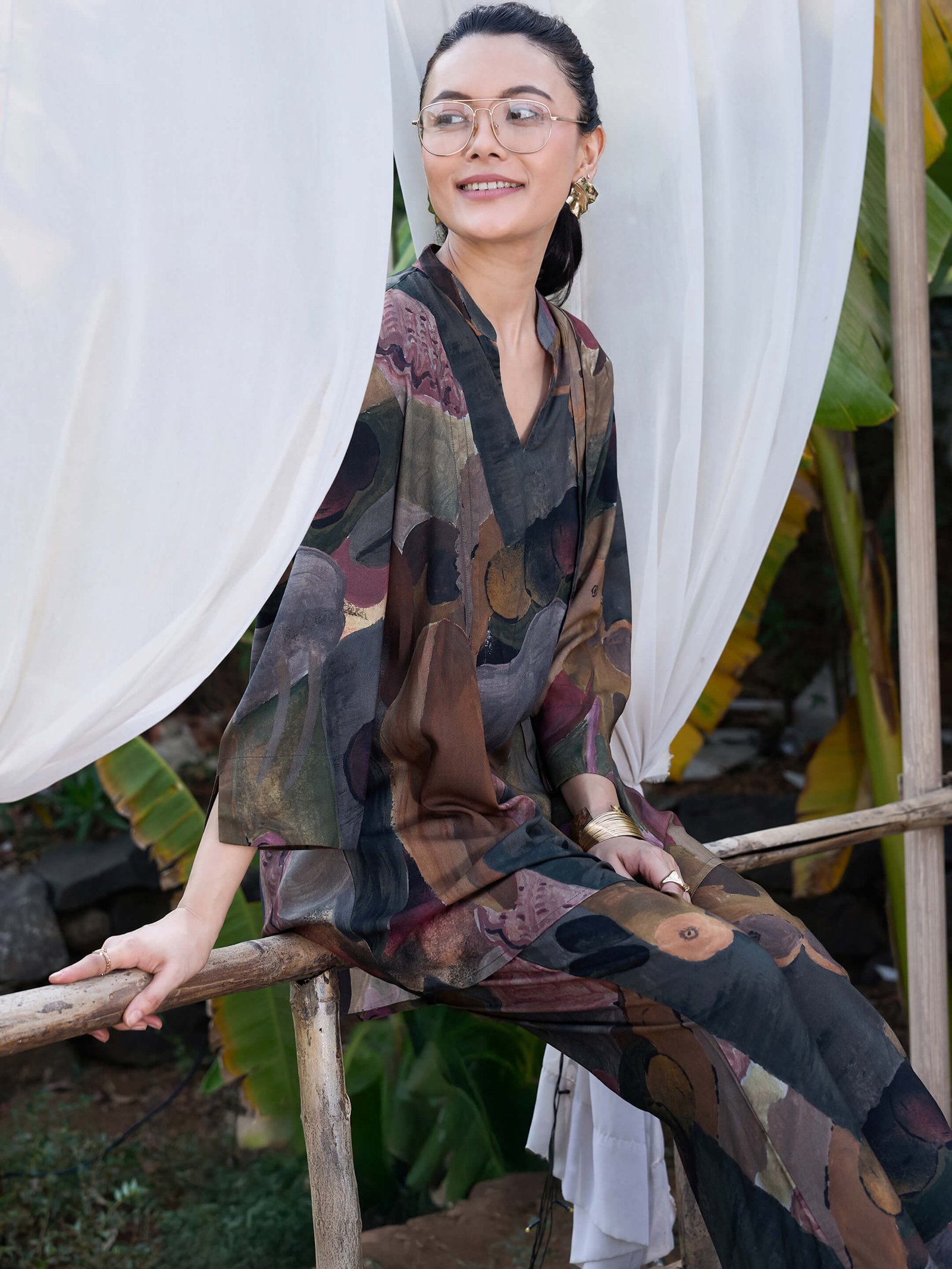 - Rayon Yellow Abstract Printed Viscos consists of shirt and pyjamas